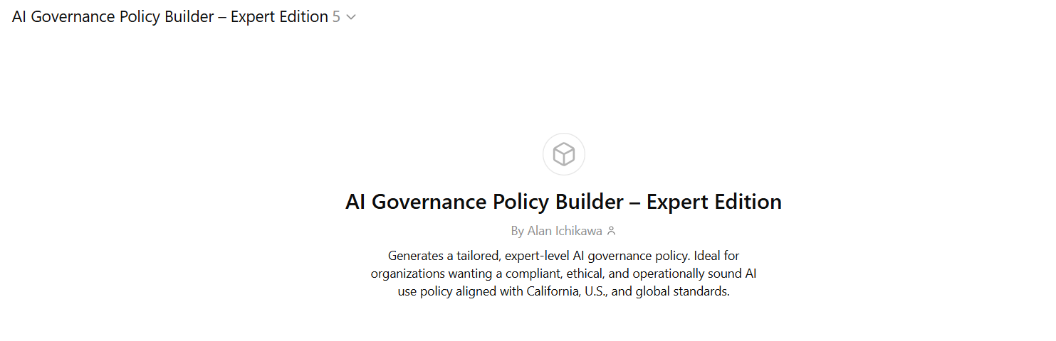 - Custom GPT Assistant: A trained, secure AI chatbot designed to support your team, answer FAQs, or streamline internal operations. (See example: Governance GPT)